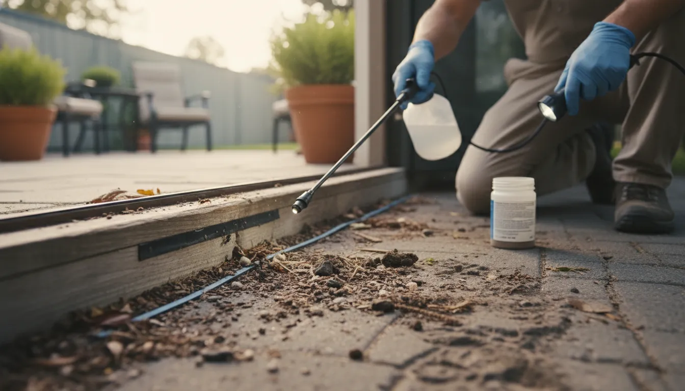 Liquid insecticides are applied around the exterior foundation, windows, doors, and other potential entry points to create a protective chemical barrier. This method kills ants on contact and deters new ones from crossing.
